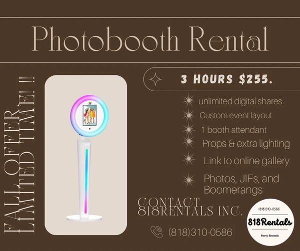 Our photo booth rentals are a great way to capture memories at your event. Our photo booth comes with a custom layout, props, extra lighting, 1 attendant, easy digital downloading via QR code, airdrop, text, email, etc. The client will also receive a link to the full gallery.